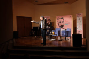 – Ова ми е третпат како доаѓам во Скопје. И секогаш тоа е поврзано со некои книжевни настани. Првиот пат Скопје многу ми се допадна, вториот пат многу ми се допадна повторно, а третиов пат паднав во несвест – рече Умит.